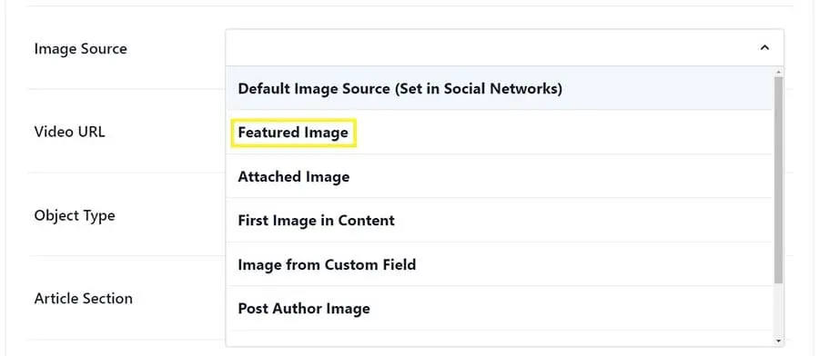 Haz clic en la pestaña ‘Social’ de AIOSEO. Luego, encuentra el campo ‘Image Source’. Haz clic en él para ver el menú desplegable.