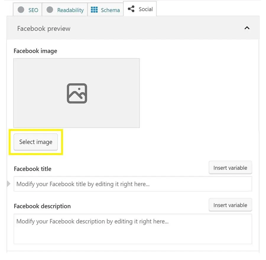 - Usa Yoast SEO para seleccionar tu miniatura de Facebook manualmente.