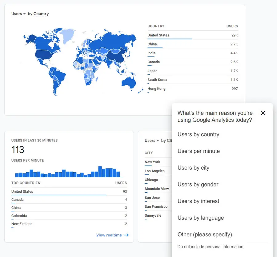 Estos reportes te proporcionarán información clave sobre tu audiencia, incluyendo desde dónde te visitan, su edad y sus intereses: