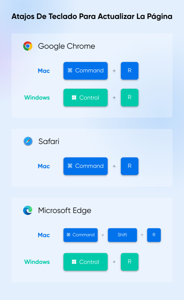 - Microsoft Edge en Mac: Command + Shift + R