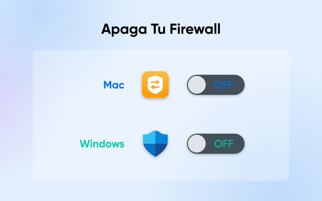 Para desactivar temporalmente tu firewall y ver si su configuración está causando el error 504, sigue estos pasos: