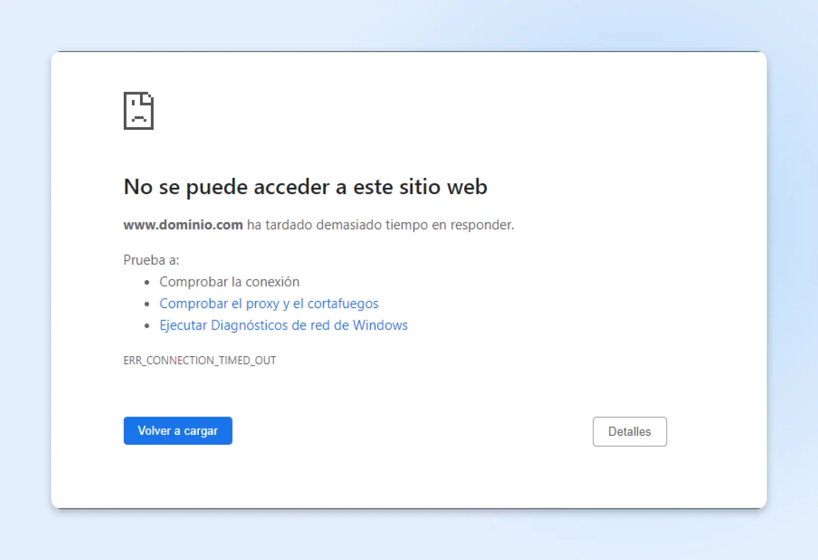 En Google Chrome, se llama error ERR_CONNECTION_TIMED_OUT.