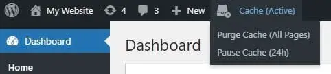 Para limpiar el caché entero, solo debes desplazar tu mouse sobre el icono Cache en el menú de tu panel y selecciona Purge Cache (All Pages).