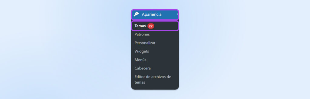 Lo que recomendamos es entrar en tu Tablero de WordPress, encontrar Apariencia en la barra lateral izquierda, y hacer clic en él para localizar Temas.