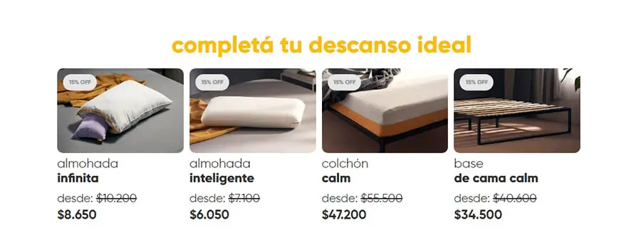 Por ejemplo, puedes crear CTAs que se ajusten a la clase de productos o servicios que vendes. En los ejemplos anteriores mostramos CTAs de una tienda de colchones que usan mensajes como “Completa tu descanso ideal”, “Quiero dormir mejor” y “Alarga la vida de tu colchón”.
