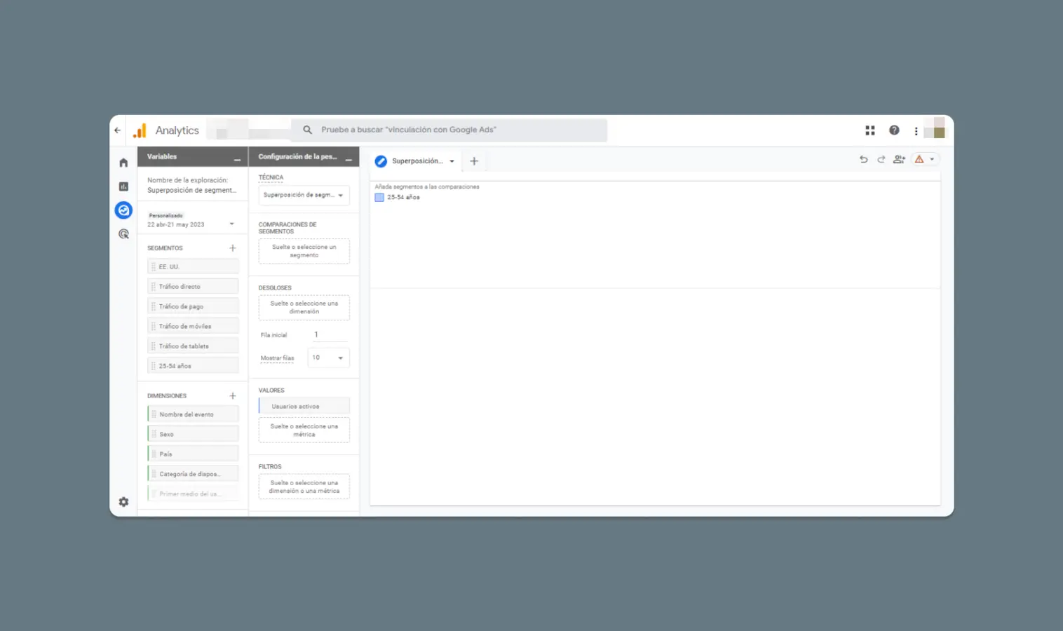 - Personar tu Informe: Las Exploraciones de GA4 te permiten personalizar un montón. Por ejemplo, ajusta el período de tiempo de tus datos, aplica filtros a tus informes y crea segmentos, basándote en criterios específicos. También, visualiza tus datos de diferentes maneras como tablas, gráficos de líneas, o circulares.