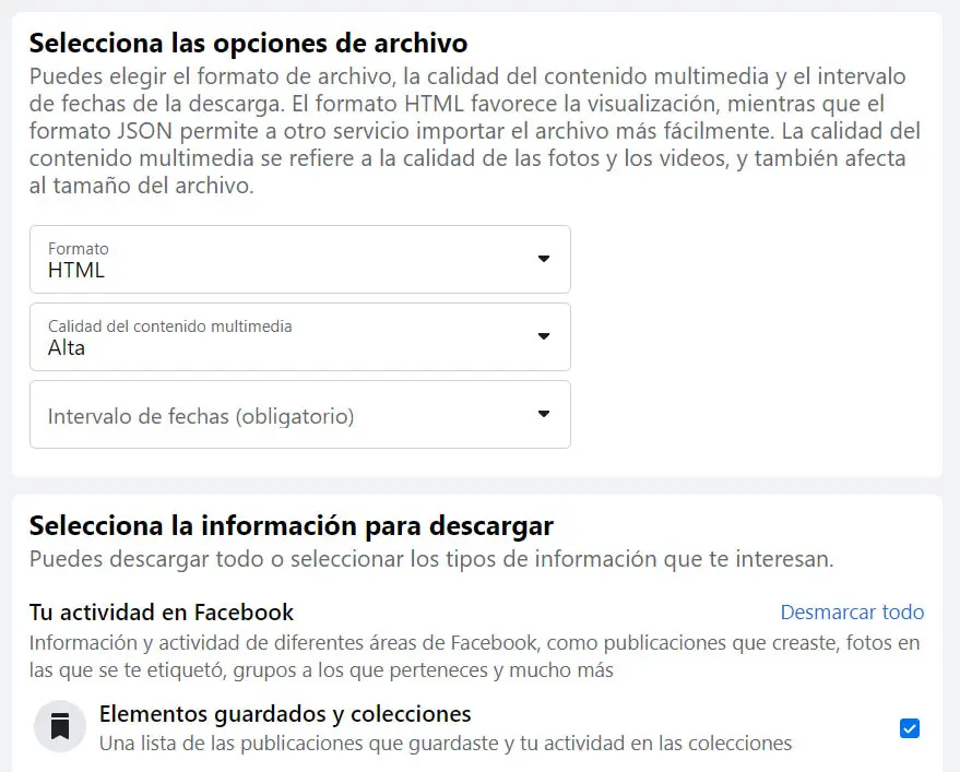 Los formatos que Facebook ofrece no son necesariamente compatibles con otras plataformas, como tampoco lo es toda la información que guardan. Es decir, si intentas importar un archivo HTML o JSON con tu información a otra red social como Pinterest, es posible que no puedan procesar toda la información.