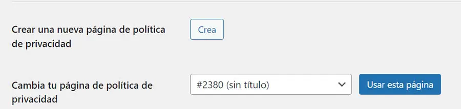 WordPress incluye una herramienta que te permite crear y publicar una política de privacidad para tu página web. Para acceder a esta herramienta, entra al panel de control de WordPress y navega a ‘Ajustes > Privacidad’. Aquí encontrarás la opción para crear una página de política de privacidad nueva o designar una página ya existente: