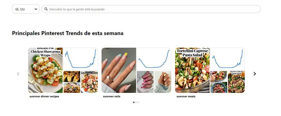 Una vez que tienes tu cuenta Business de Pinterest lista, es momento de crear algunos Pines. Antes de comenzar, querrás identificar algunas tendencias populares en tu nicho. Afortunadamente, Pinterest te proporciona algunas herramientas para lograr esto.