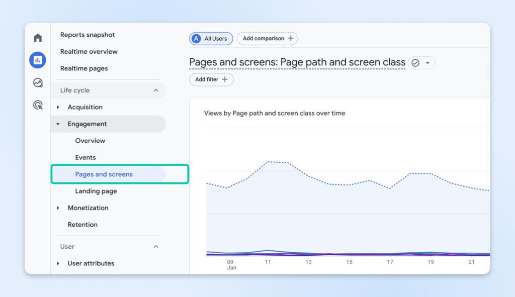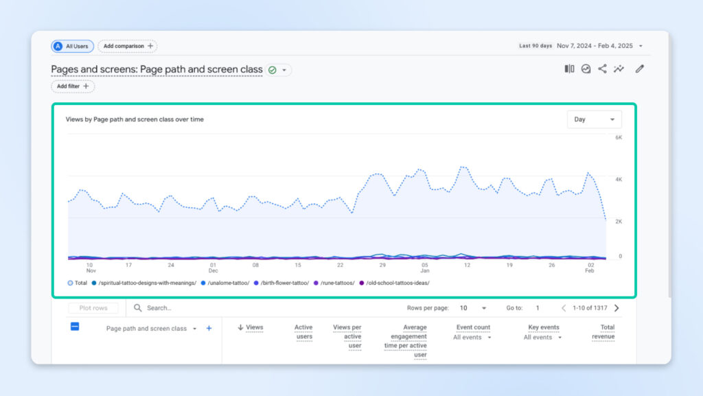 Finalmente, es hora de regresar a GA4 y ver si tu arduo trabajo está dando frutos. Al revisar el rendimiento de tus publicaciones recién actualizadas, podrás determinar si tus ajustes han marcado la diferencia y refinar tu enfoque basado en datos reales.