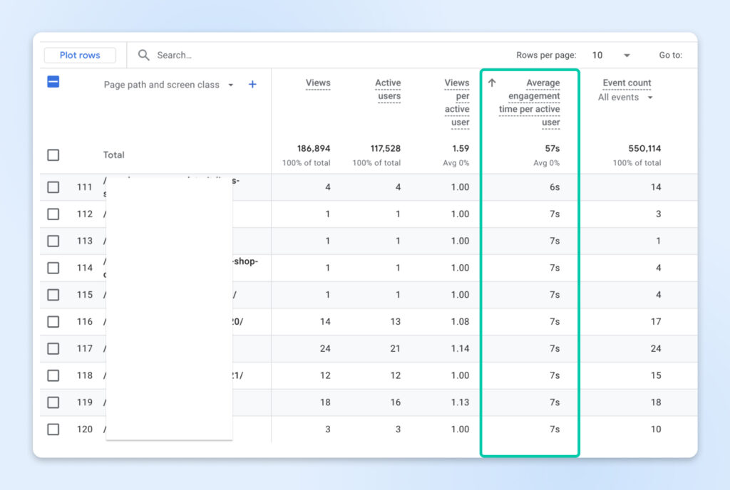 Monitorea publicaciones donde los visitantes pasan menos de 60 segundos o publicaciones donde hay menos eventos en comparación con el promedio que observas en tu sitio web. Los eventos pueden ser clics en diferentes enlaces, interacciones con el pop-up de tu sitio web, etc.