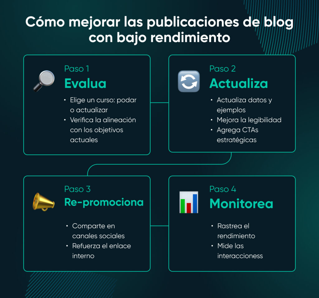También exploraremos por qué algunos contenidos simplemente no funcionan como se esperaba y cómo decidir si una publicación obsoleta debe ser actualizada o eliminada por completo.