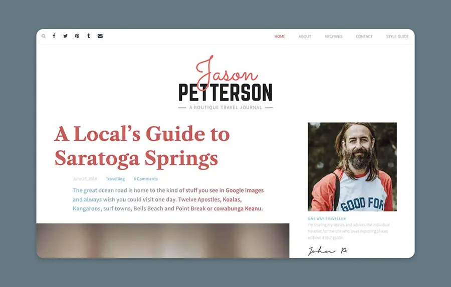 Particularmente nos gusta el creador de logos incorporado, con el cual podrás probar varias tipografías, hasta crear algo único. Jason, además, cuenta con una gran sección de archivo, así que tus lectores hallarán tus publicaciones sin tener que usar un motor de búsqueda.