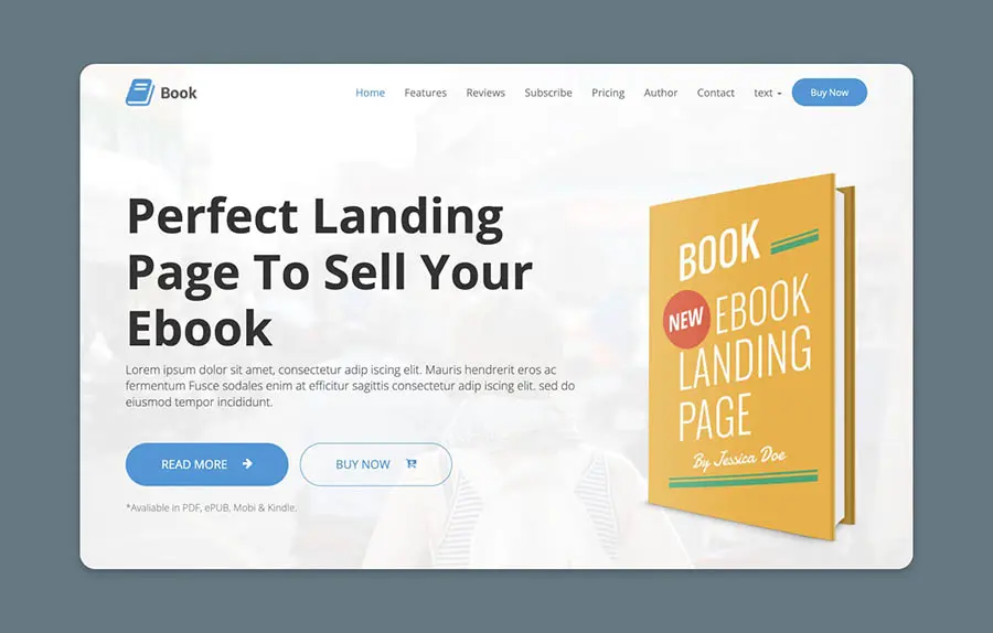 Diseñada para vender libros digitales, Book es un tema premium que ofrece un diseño realmente llamativo a tus páginas de destino.