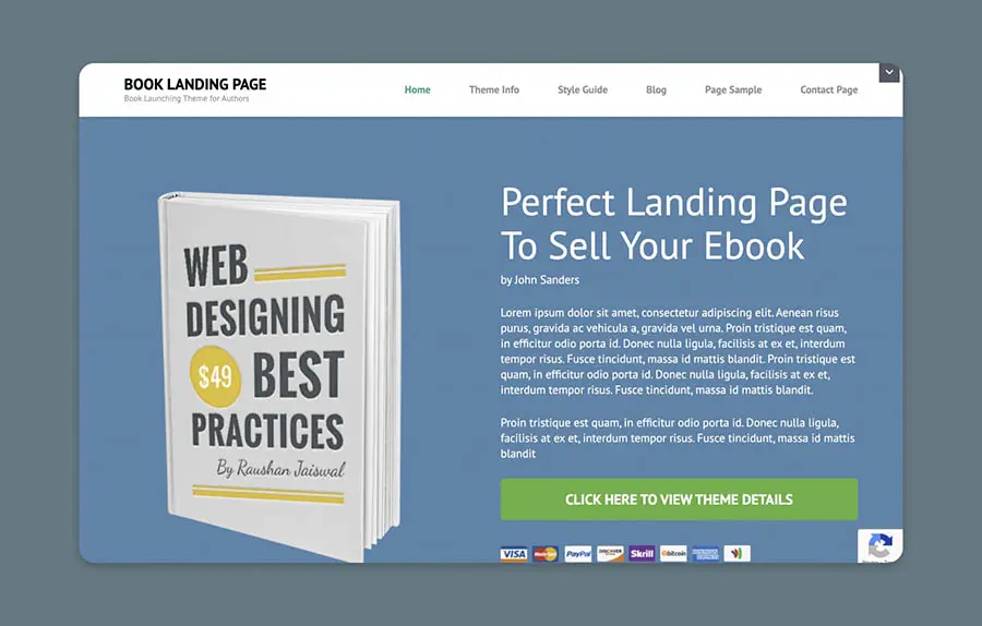8) Book Landing Page: El Mejor Tema Gratuito para Autores