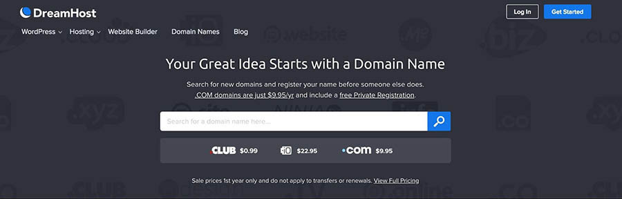 At DreamHost, we give you a free domain name when you purchase an annual web hosting plan. However, you can also buy a domain from DreamHost without having a hosting plan with us.