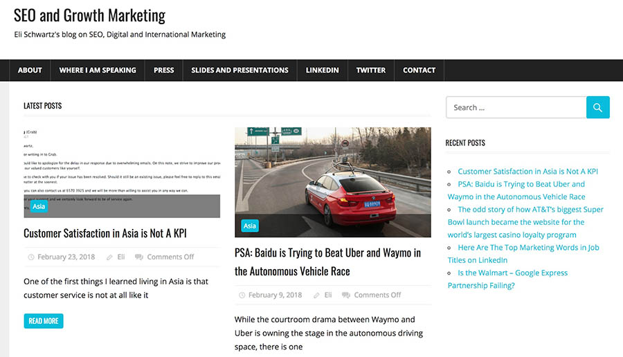 About 10 years ago, Schwartz decided to start a blog via DreamHost, elischwartz.co, as a way to delve into some of his favorite marketing-related topics, such as data, experiments, technology, and Asia.