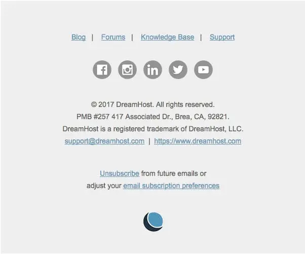 Es ist nicht nur eine gute Idee, eine einfache Abmeldemethode zu haben. Ihren Abonnenten deutlich und auffällig zu erklären, wie sie sich von zukünftigen Nachrichten abmelden können, ist gesetzlich vorgeschrieben. Sie müssen den Abonnenten die Wahl lassen, E-Mails zu stoppen, und Sie müssen erklären, wie (indem Sie eine klare, kontrastreiche Schrift verwenden, um sie in Ihrer E-Mail zu unterscheiden, indem Sie eine Antwortadresse angeben, auf die geantwortet werden soll — die eine menschliche Antwortadresse sein sollte — oder indem Sie einen anderen internetbasierten Weg bereitstellen).