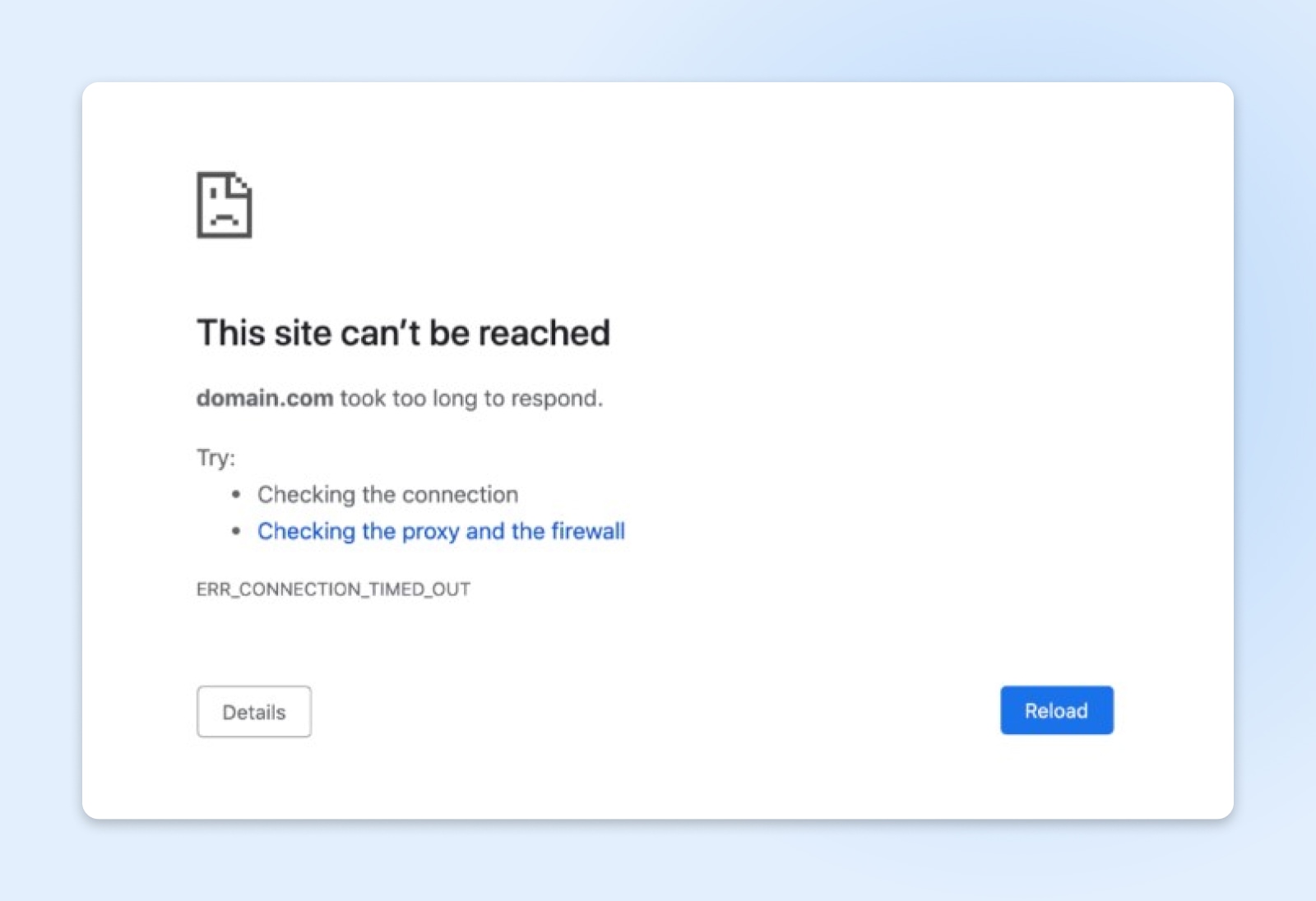 In a Google Chrome browser, it’s called an ERR_CONNECTION_TIMED_OUT error.
