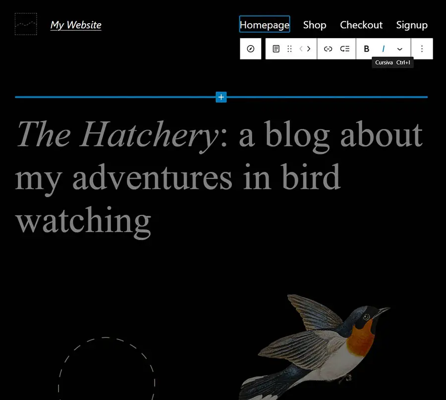 El Editor de Bloques también te permite crear y modificar las plantillas de algunos temas. Si usas un tema que es compatible con esta funcionalidad, puedes usar el editor para agregar, modificar, y quitar bloques: