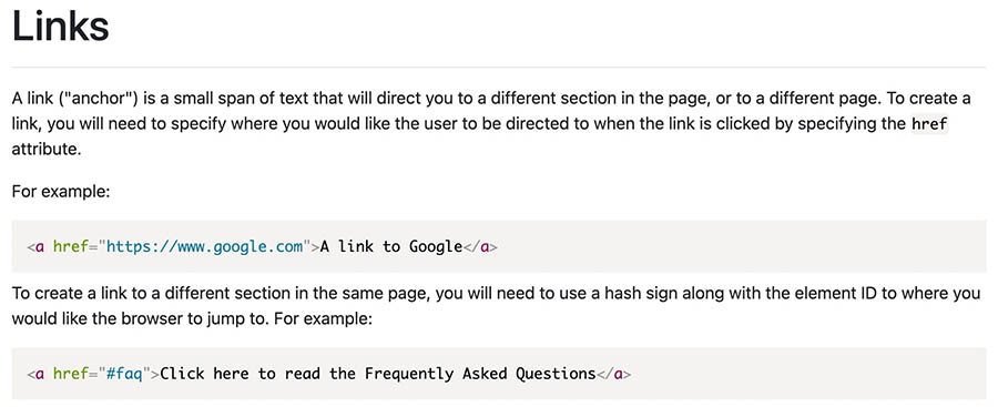 Algunos elementos básicos de HTML que debes dominar incluyen los elementos de anclaje, que pueden ayudar a crear tutoriales interactivos y enlazar a tutoriales en línea: