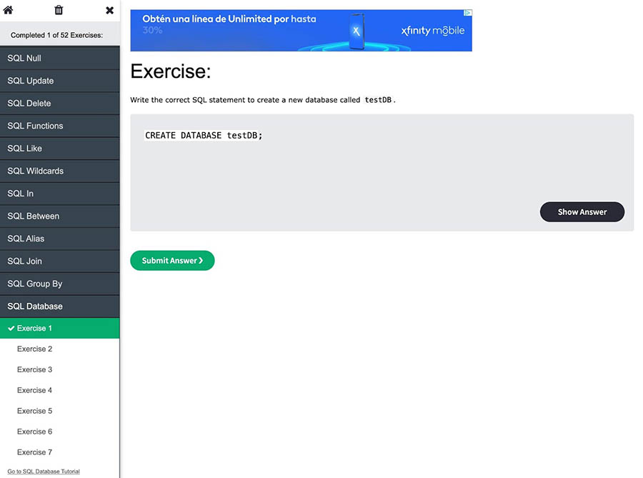 Afortunadamente, puedes obtener una certificación SQL fácilmente en línea. El curso de Introducción a Structured Query Language de Coursera, te enseña cómo crear una base de datos MySQL. Una vez que completes el curso, recibirás un certificado.