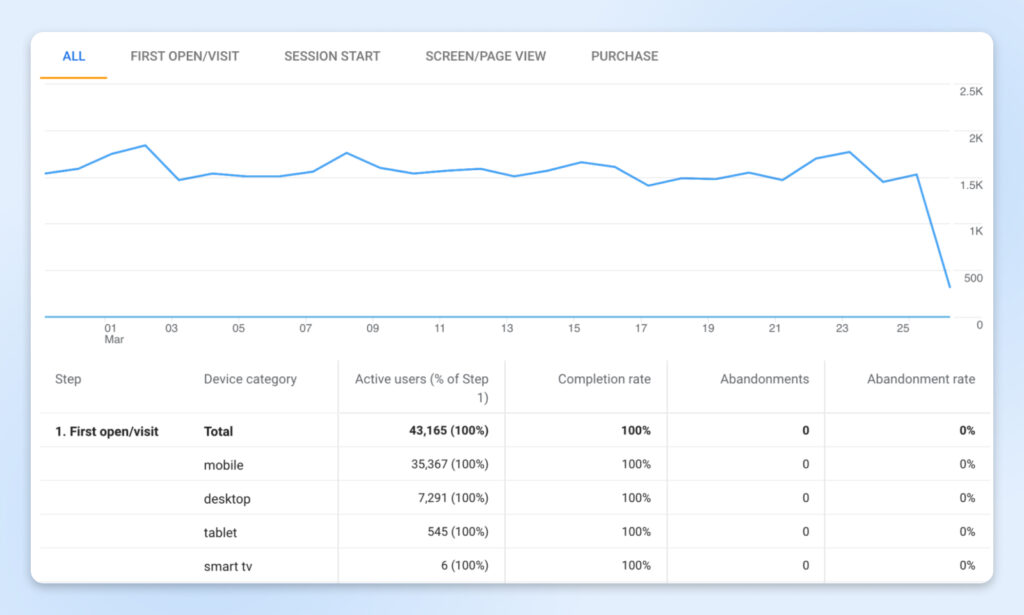 Este enfoque te brinda más flexibilidad para entender tanto los recorridos exitosos como los abandonados.