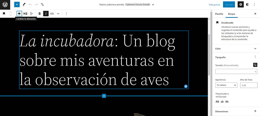 Este bloque te puede ayudar a organizar tu contenido más eficientemente. Por ejemplo, puedes seleccionar el encabezado H2 para las secciones principales y H3-H6 para subsecciones. Adicionalmente, puedes añadir un hipervínculo para el encabezado.