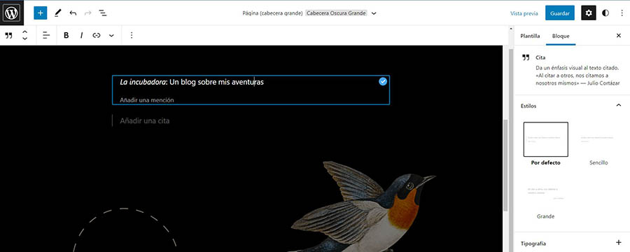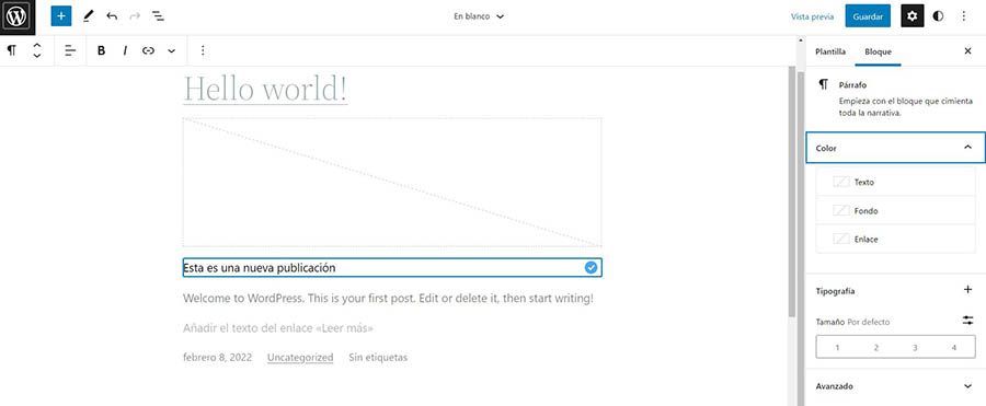 Este es el bloque más utilizado frecuentemente en el editor Gutenberg.