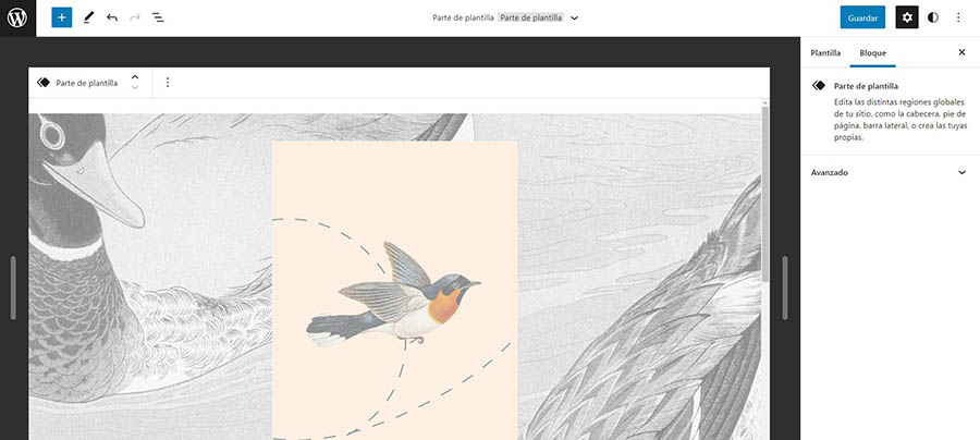 Este elemento puede ser visto como un grupo de bloques. La parte de plantilla te ayuda a organizar la estructura de tu página. Estos bloques solo pueden ser utilizados cuando estás editando plantillas y son una excelente manera de administrar las áreas globales tales como encabezados y pies de página.
