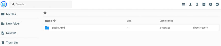 Encuentra la carpeta raíz etiquetada como public_html (puedes verla arriba, en el lado derecho de la pantalla) y haz clic en ella para localizar el archivo wp-config.php. Si no puedes encontrarlo como public_html, puede que esté listado como el nombre de tu dominio.