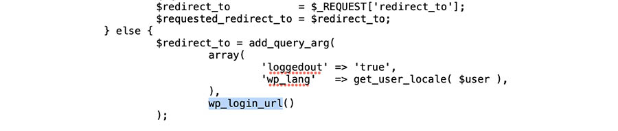 Utiliza la herramienta de búsqueda para encontrar cada instancia de wp_login_url, que se verá algo así: