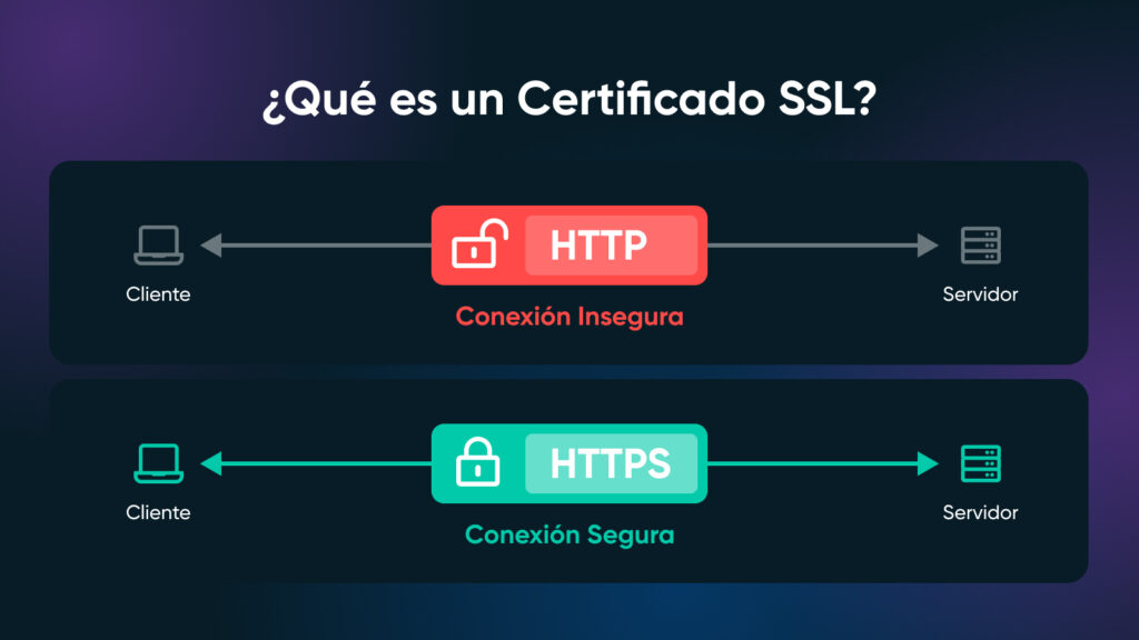 La función de un certificado SSL es encriptar los datos que viajan desde el navegador del visitante hasta el servidor de la empresa. Esto garantiza que los actores malintencionados no puedan espiar ni interceptar la información.