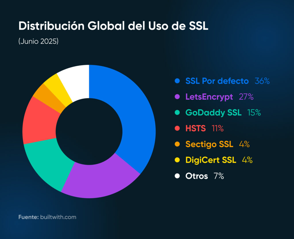 Según BuiltWith, hay más de 258 millones de certificados SSL en internet a junio de 2025. La mayoría son gratuitos, automáticos y brindan excelente seguridad.