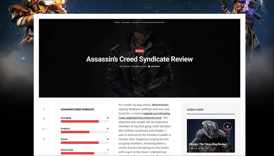 Este tema te permite mostrar tus reseñas junto con tus calificaciones finales. También puedes mostrar calificaciones de tus usuarios para darle a los lectores una vista más general de cada artículo.