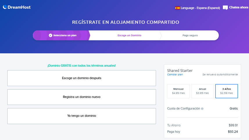 Tu nombre de dominio es la dirección virtual de tu sitio web. Fíjate en la barra de menú de tu navegador; allí podrás ver nuestro nombre de dominio (“dreamhost.com”).