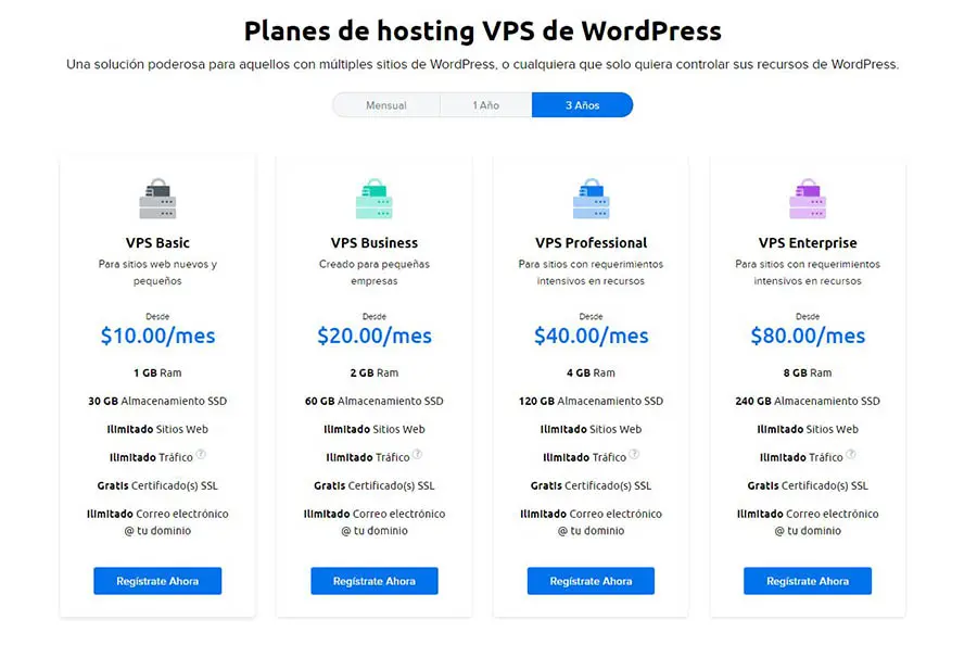 El hosting en servidor privado virtual (VPS) es ideal para sitios web que necesitan una velocidad constante y flexibilidad sin que su costo sea elevado. Con VPS, obtienes un servidor virtualizado que ofrece recursos dedicados, lo que significa que tu sitio no se ralentizará durante momentos de alto tráfico.
