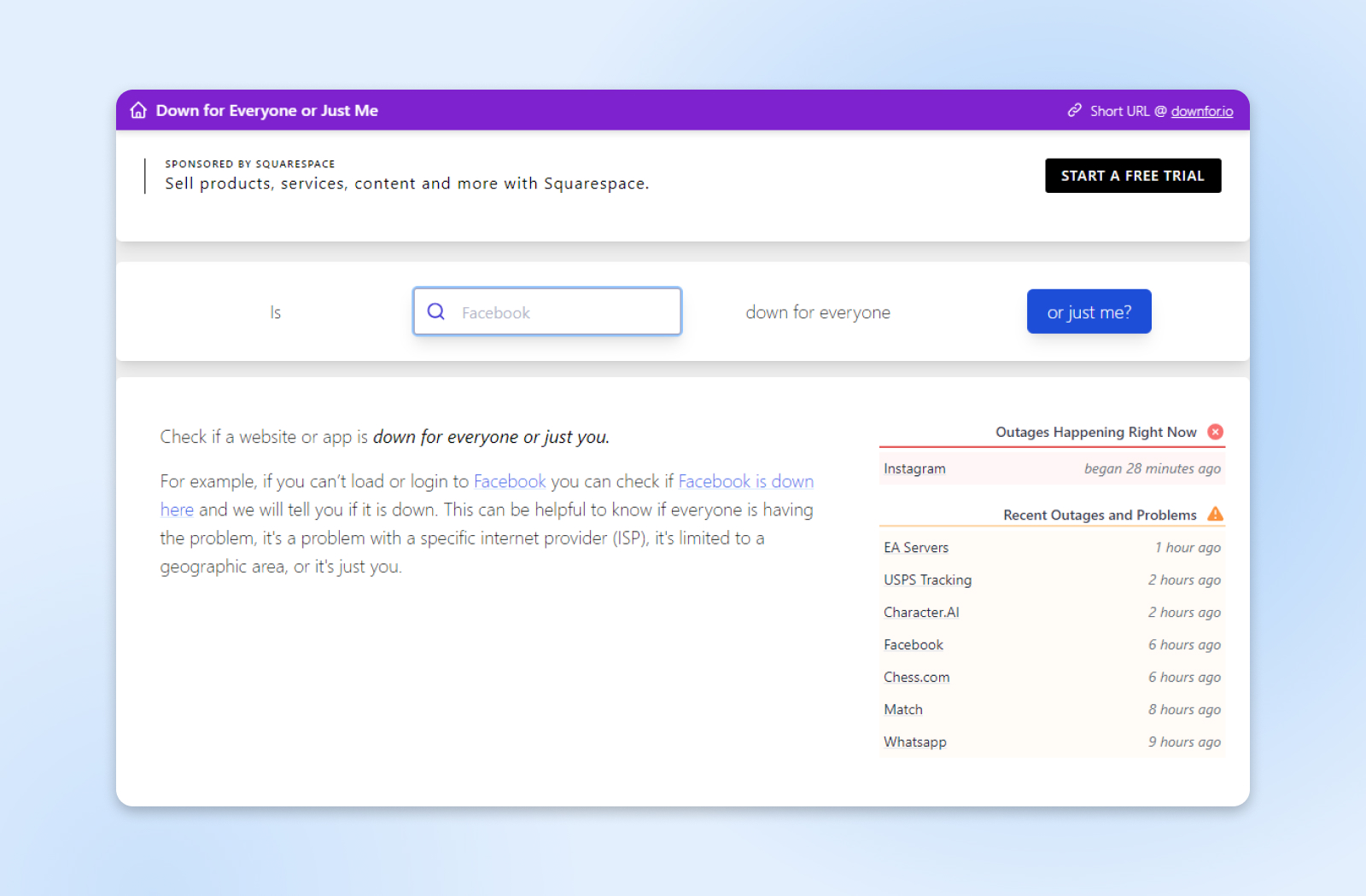 Otra manera de determinar si el problema es de tu lado, o en el lado del servidor, puedes usar una herramienta como Down for Everyone or Just Me, o Is It Down Right Now.