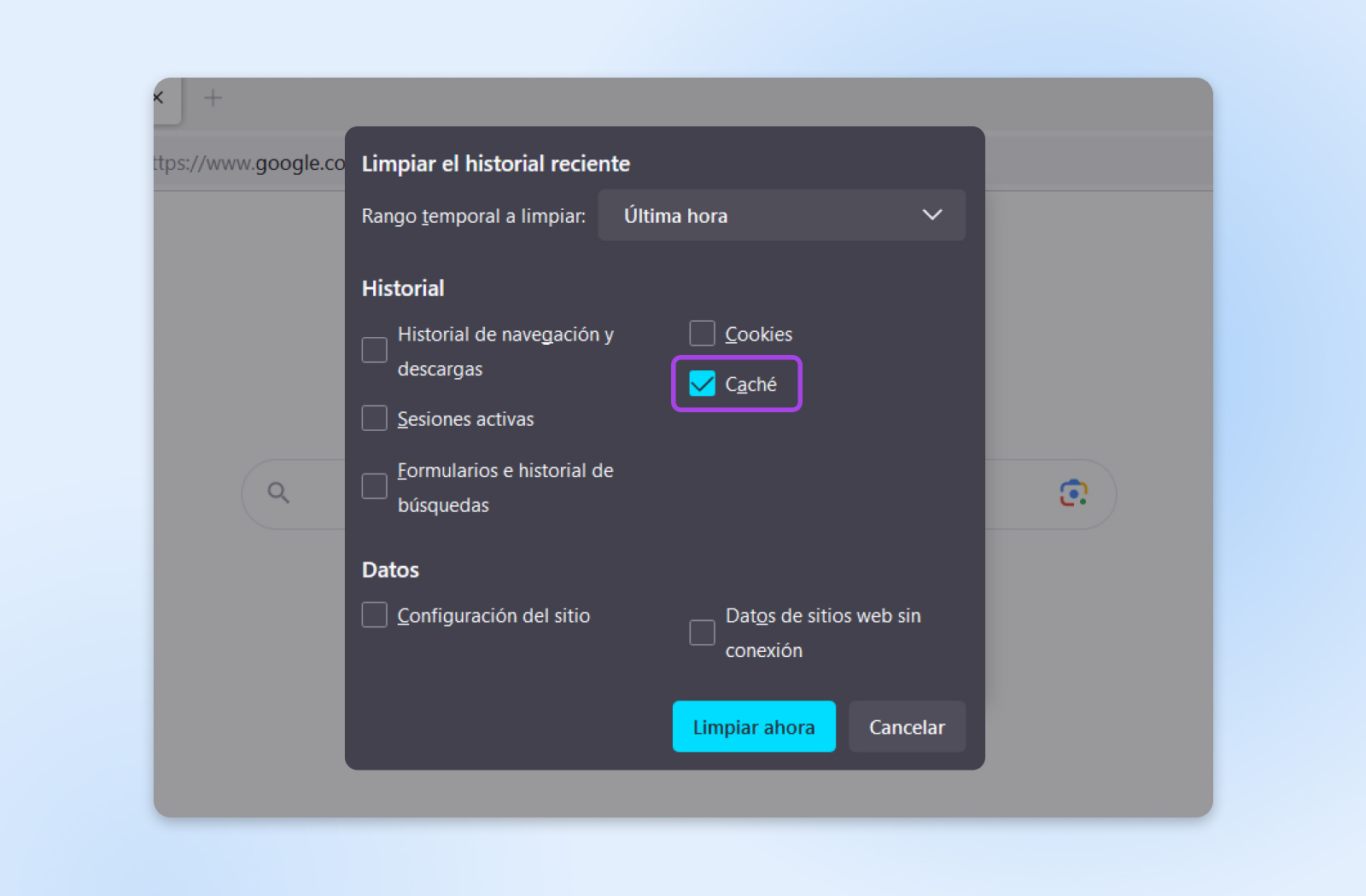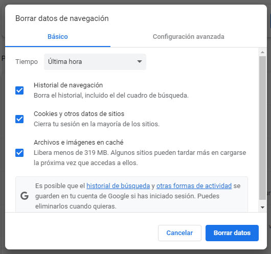 En función de esto, lo siguiente que debes hacer es borrar el caché de tu navegador. Dependiendo del navegador que utilices, los pasos pueden variar.