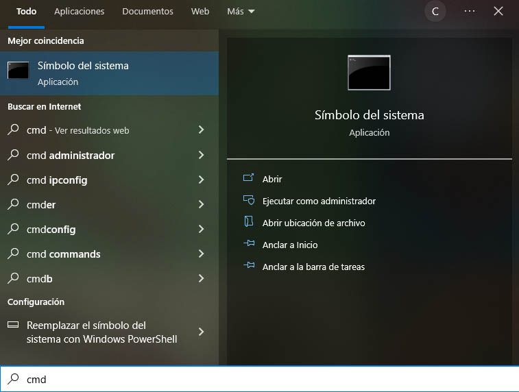Ahora tendrás acceso a tu Símbolo del sistema.