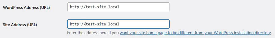 Luego verás dos campos: Dirección de WordPress (URL) y Dirección del sitio (URL).