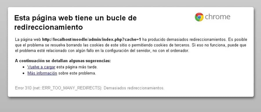 Por ejemplo, en Google Chrome, usualmente se muestra como “esta página no funciona”, mencionando “demasiadas redirecciones como el problema del error “ERR_TOO_MANY_REDIRECTS”.
