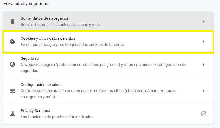 En la siguiente página, selecciona ‘Ver todas las cookies y datos de sitios’.
