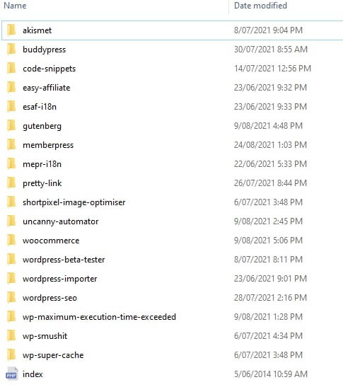 Allí, verás una serie de carpetas con los nombres de tus plugins instalados.