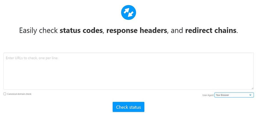 Esta aplicación gratuita en línea te permite ingresar múltiples URLs y verificar sus estados. También, puedes especificar el agente usuario, tal como tu navegador, robots de motores de búsqueda y dispositivos móviles. Una vez que ingresas tu URL, podrás ver cualquier estado o códigos de error asociados con tu sitio al final de la página.