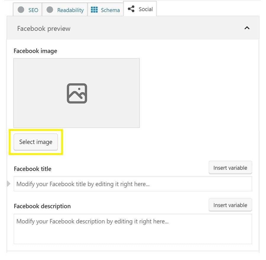 - Usa Yoast SEO para seleccionar tu miniatura de Facebook manualmente.
