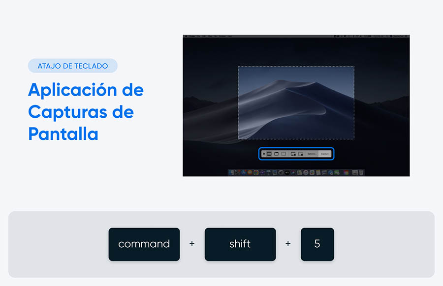 | ‘Command + Shift + 5’ | Abre el menú de captura de pantalla |