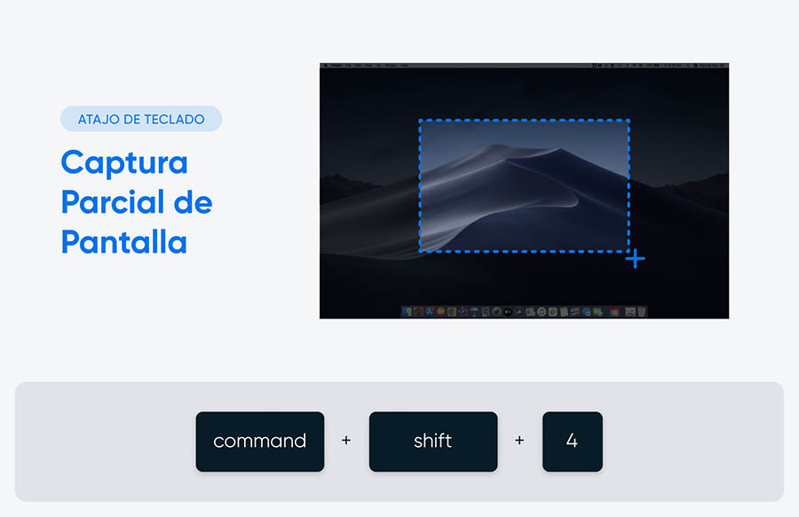 | ‘Command + Shift + 4’ | Captura solo una porción seleccionada de la pantalla |