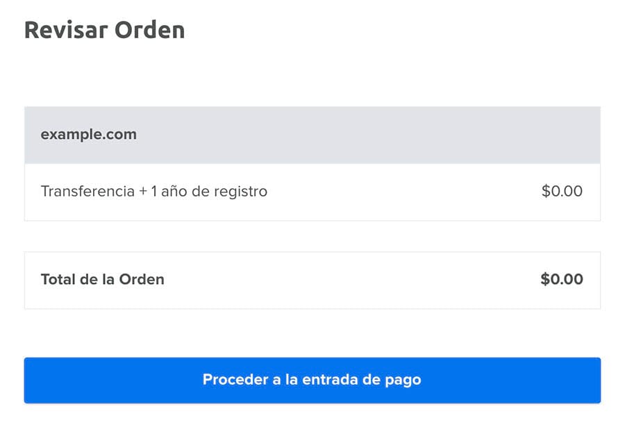 Si tienes un registro gratuito con tu compañía de registro actual, DreamHost no te cobrará. Si no tienes un registro gratuito, tendrás que pagar por él en este paso.