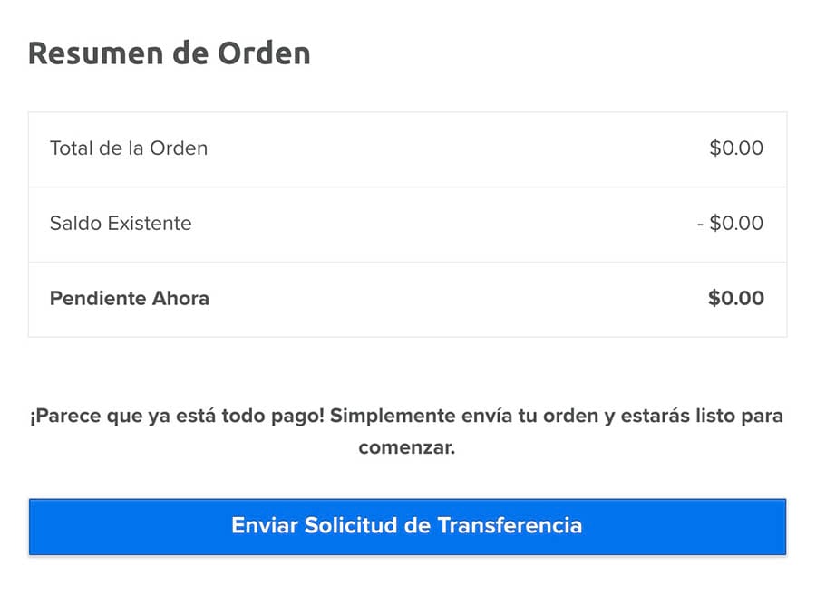 Si necesitas pagar por la transferencia, lo sabrás porque la tarifa aparecerá en el Resumen de Compra.